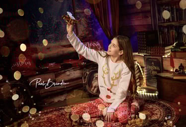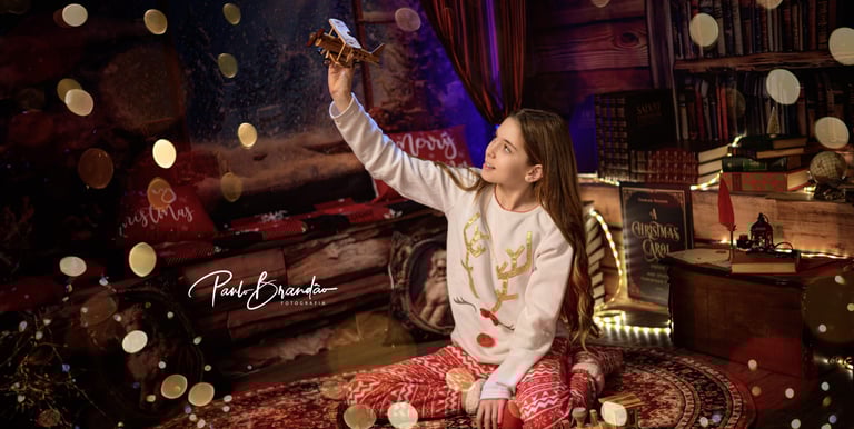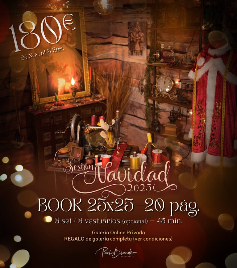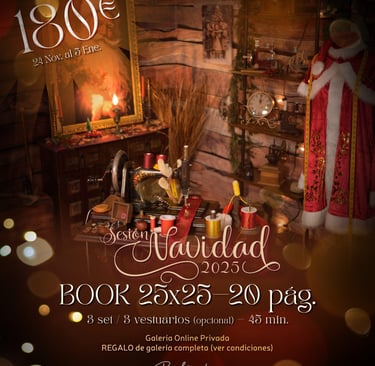 Las sesiones se realizan en nuestro estudio cálido en Caldas de Reis, decorado especialmente para Navidad.